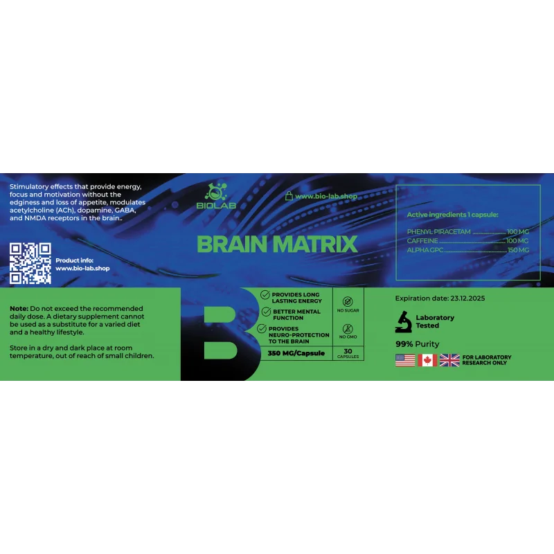 Composition (1 capsule): Phenylpyracetam 100 mg, Caffeine 100 mg, Alpha GPC 150 mg.